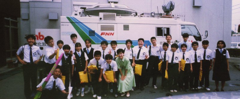 UHBの前で記念撮影 真ん中の女性はリポーターの萬谷さんだったと思います。